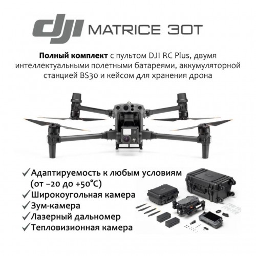 Квадрокоптер DJI Matrice 30T с тепловизором - это промышленное решение в области беспилотных аэрокосмических систем, предоставляющее высокоточные и многофункциональные возможности для съемки, мониторинга и обследования. Этот дрон включает в себя инновационные технологии и функции, обеспечивая широкий спектр применения в различных отраслях.