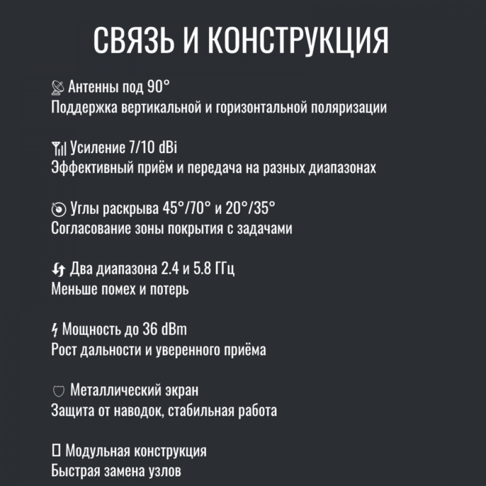 - Диапазоны работы: 2.4 GHz / 5.8 GHz